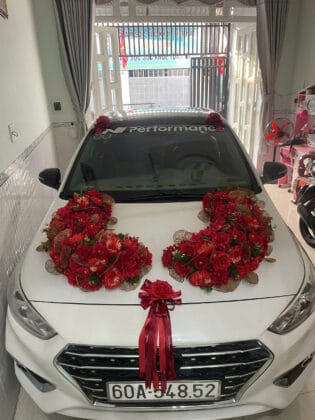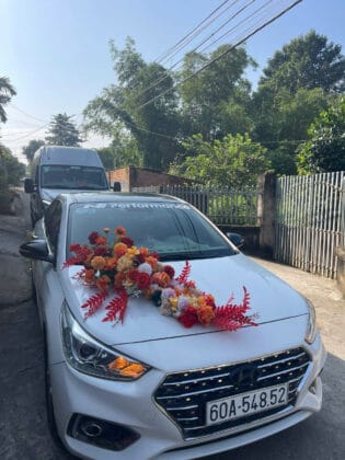Được tặng hoa vải trang trí khi thuê xe cưới Accent.